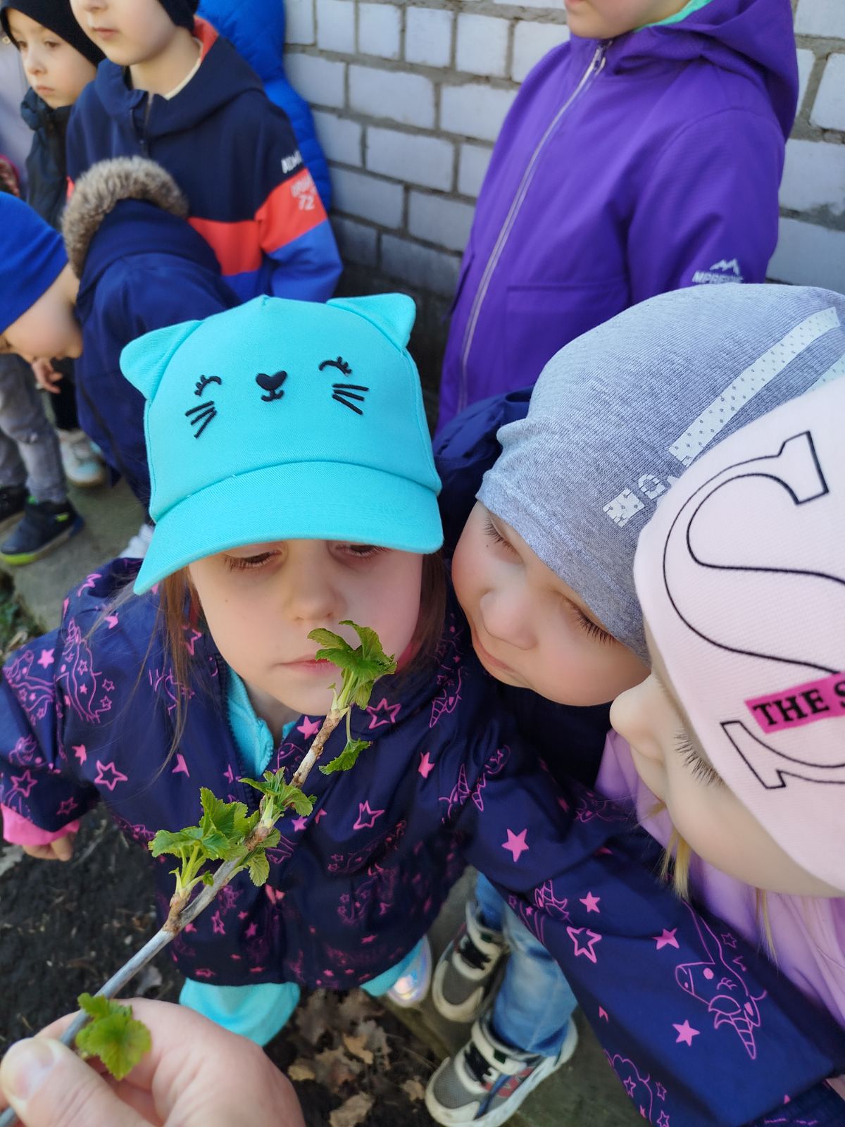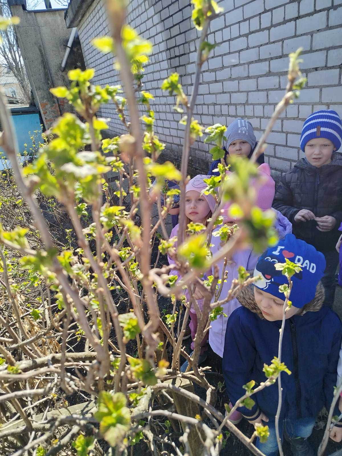 Воспитанники средней группы на прогулке наблюдали за первыми листочками с целью повторить названия деревьев и кустарников. Обсуждали строение деревьев и кустарников (ствол, ветки, листья). Закрепили знания детей о листочках, что из почек появляются листочки. Ребята с интересом наблюдали за появлением новых проявлений весны.