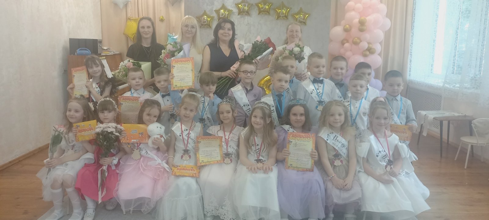 29 мая в нашем детском саду прошел выпускной бал. Праздник был наполнен яркими красками, трогательными моментами и незабываемыми эмоциями. Воспитанники радовали своими талантами: они пели песни, танцевали задорные танцы и читали трогательные стихотворения. В их глазах горел огонек радости и предвкушения чего-то нового и интересного. Не обошлось и без сюрпризов! К ребятам пришли сказочные герои, которые провели веселые игры и конкурсы, подарив детям массу положительных эмоций.