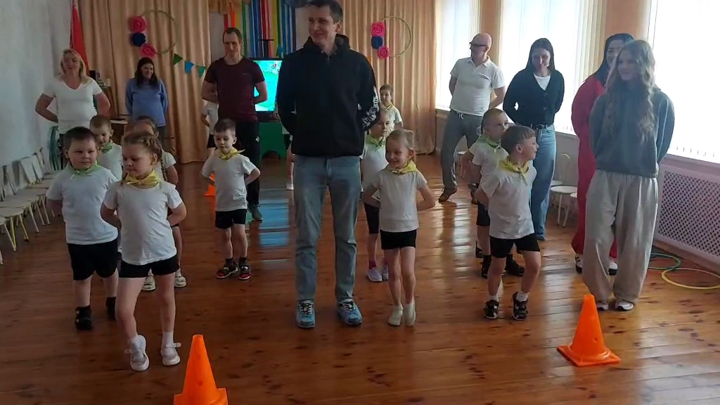Вместо привычной зарядки в музыкальном зале нас ждал настоящий семейный фитнес-старт. Под зажигательную музыку мамы, папы и ребята выполняли упражнения в парах, доказывая, что спорт — это весело, когда ты вместе с семьей.