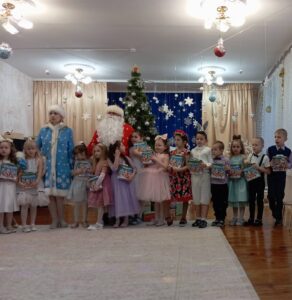 С 27 декабря в нашем детском саду проводятся новогодние праздники во всех возрастных группах. Сказочно украшенный музыкальный зал, сверкающие огоньки, нарядная ёлка, увлекательные танцы и хороводы, стихи, загадки, веселые игры дарят ребятам и их родителям праздничное новогоднее настроение.