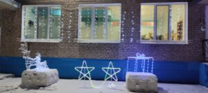 Новый год — особый праздник, наполненный атмосферой волшебства и чуда. Яркость и праздничность придает новогоднее убранство учреждения образования и его территории. Украсить детский сад к Новому году – дело хлопотное, но приятное. Коллективом учреждения и законными представителями украшены яркими и красочными декорациями групповые помещения, приемные, лестничные пролеты, музыкальный зал, территория.